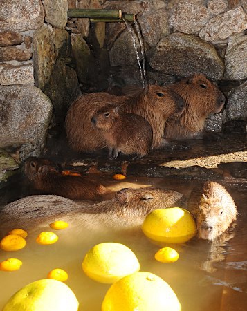這是因為冬至在日文裡讀作「とうじtouji」,跟利用泡澡來達到治療效果的「湯治(とうじtouji)」具有同樣的發音。